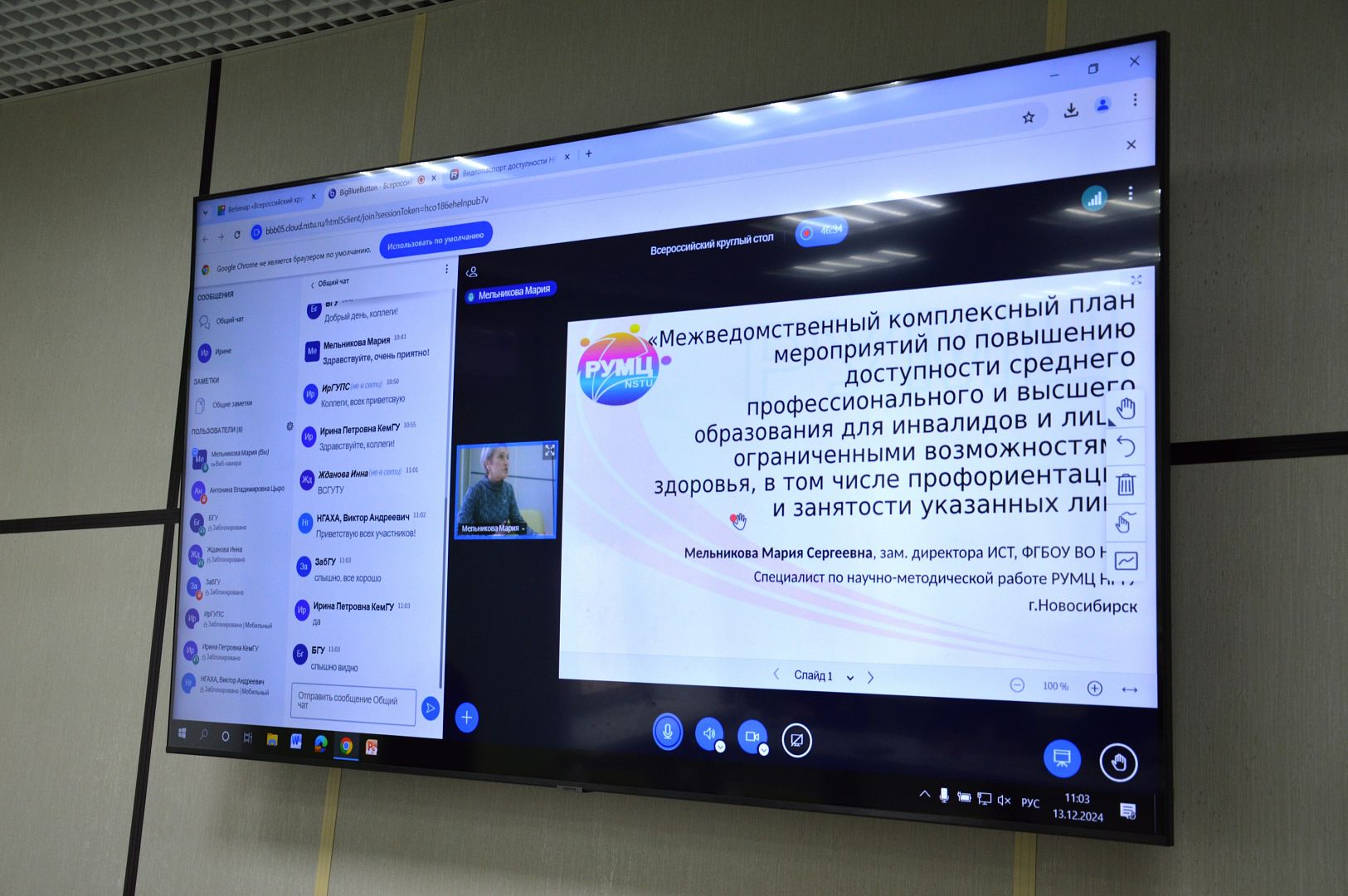 13 декабря 2024 года Алтайский государственный университет стал площадкой для проведения Всероссийского круглого стола «Задачи и направления региональных межведомственных комплексных планов мероприятий по повышению доступности среднего профессионального и высшего образования для инвалидов и лиц с ограниченными возможностями здоровья». Участниками стали представители профессорско-преподавательского состава вузов-партнеров РУМЦ НГТУ и региональных органов исполнительной власти.
