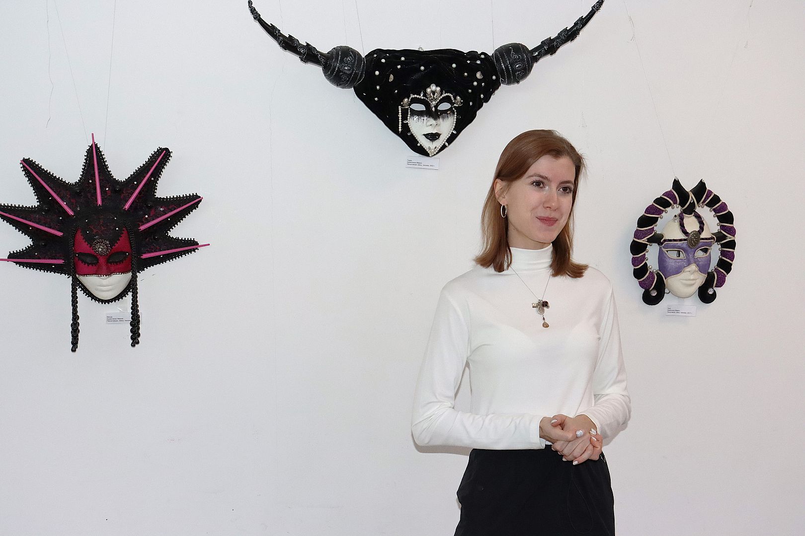 На выставке представлено разноплановое творчество не только Ксении Леухиной, но и Марии Кривоченко — это стилизованные под венецианские и народные карнавальные маски, а также маски для популярных игр и квестов — очень востребованные на сегодняшний день арт-объекты.