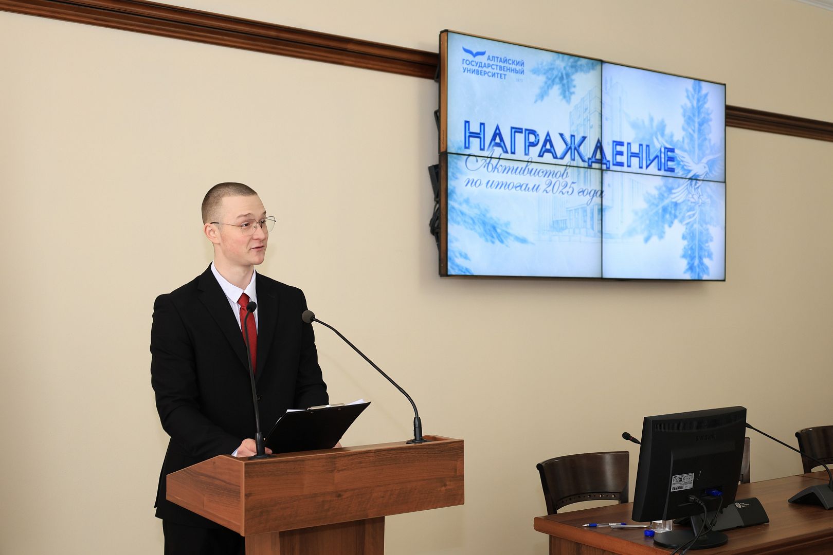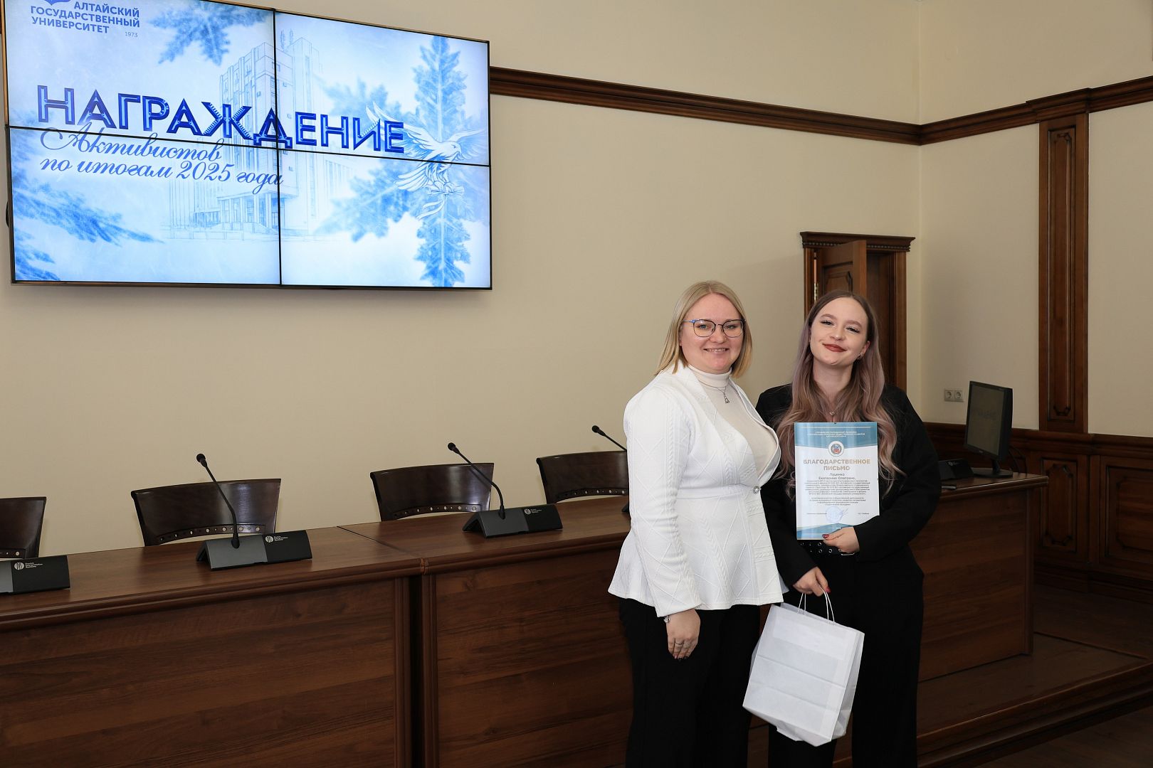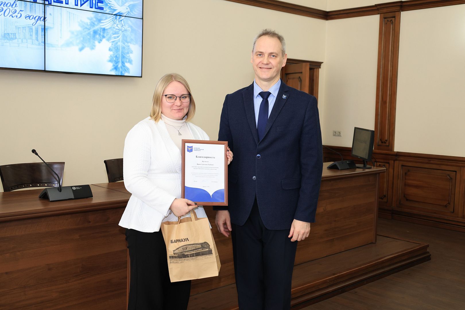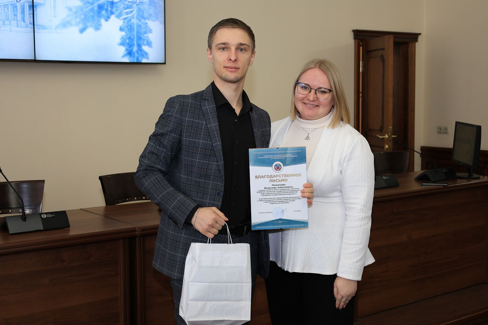 В преддверии Дня студента, 23 января, в Алтайском государственном университете состоялось торжественное награждение студентов по итогам 2025 года в сфере молодежной политики. Тех, кто проявил себя в культуре, искусстве, спорте, добровольчестве и других сферах.