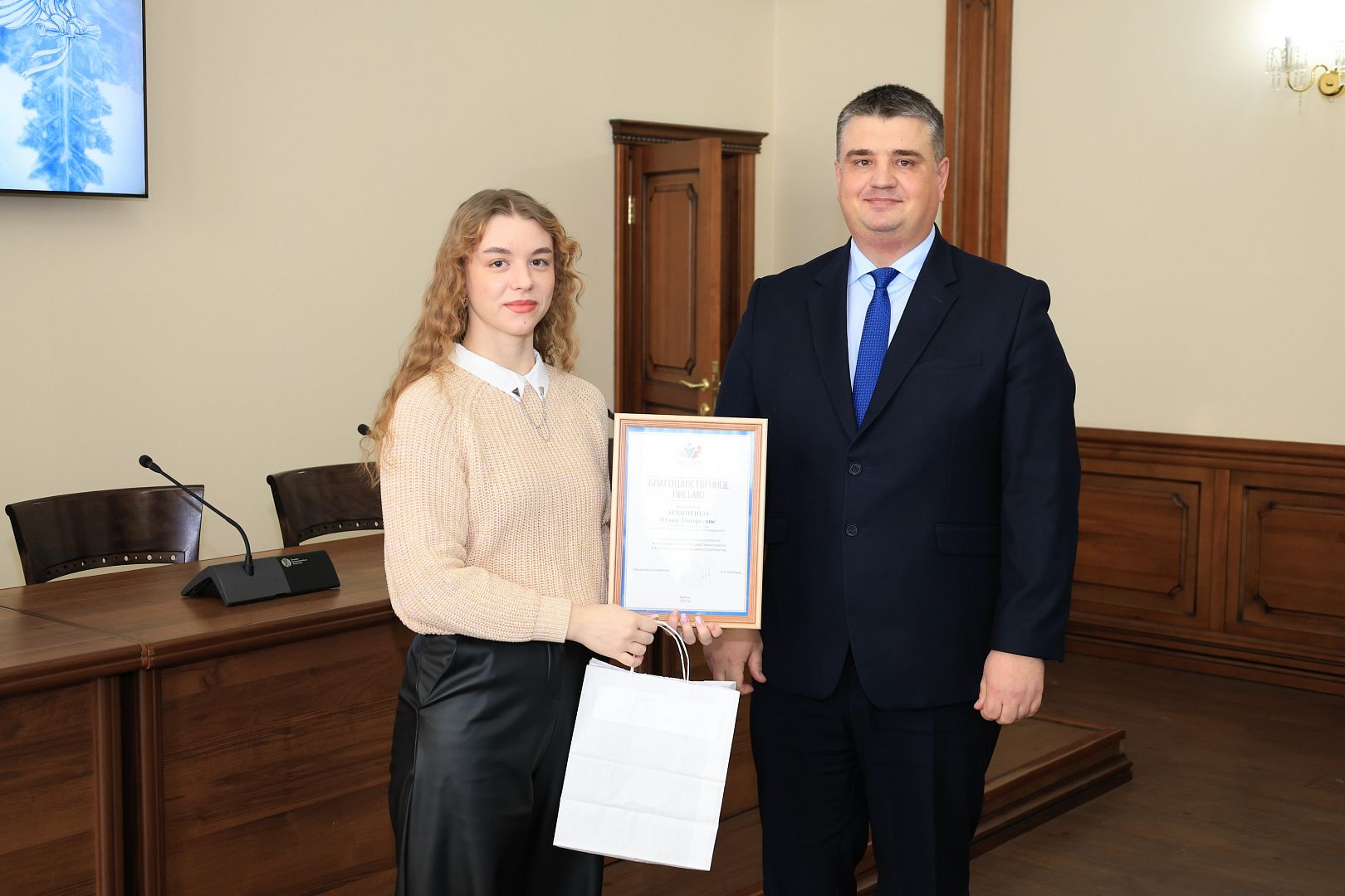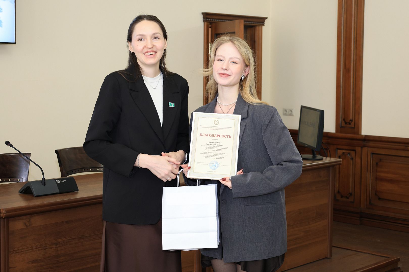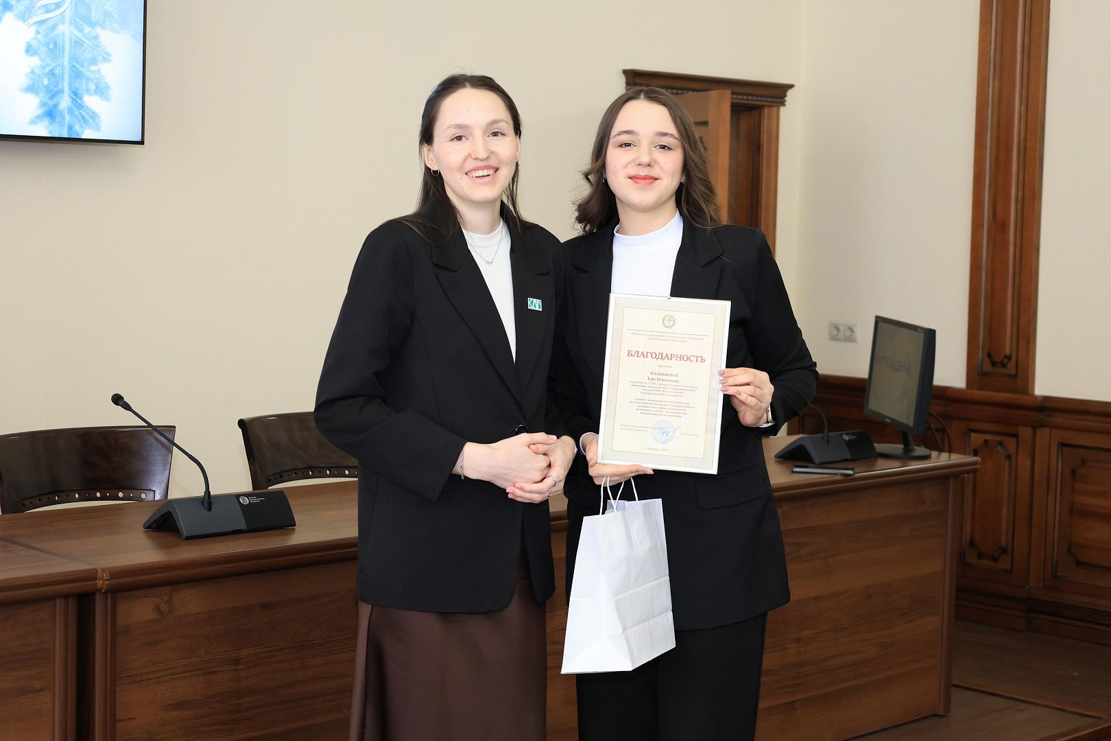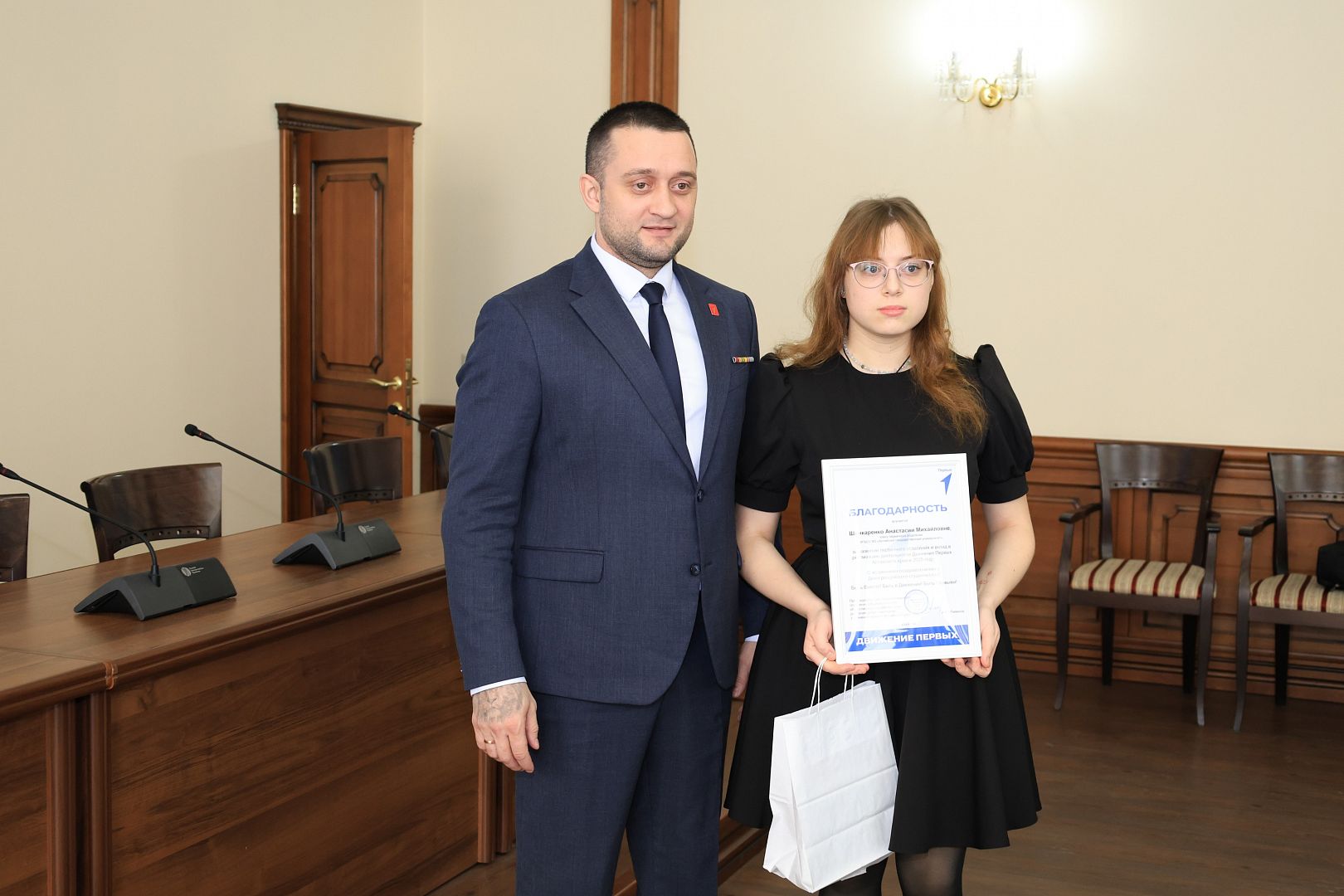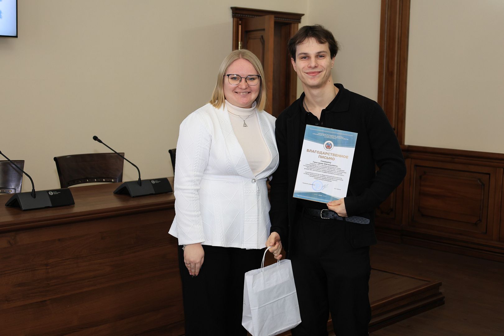 За активное участие в общественной деятельности в сфере молодежной политики, развитии патриотизма и формировании гражданской позиции студенческой молодежи Галина Берлизова вручила награды студентам: