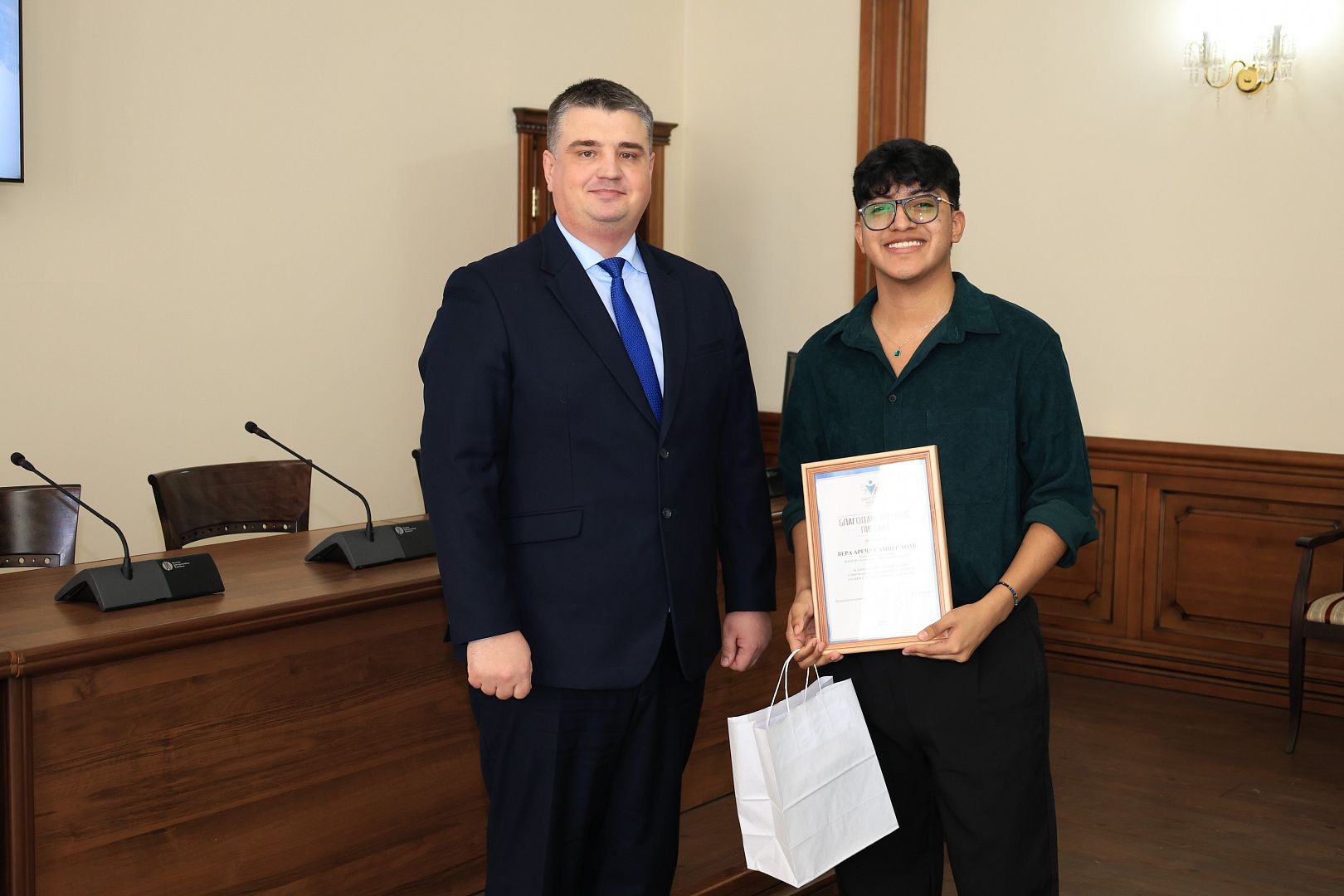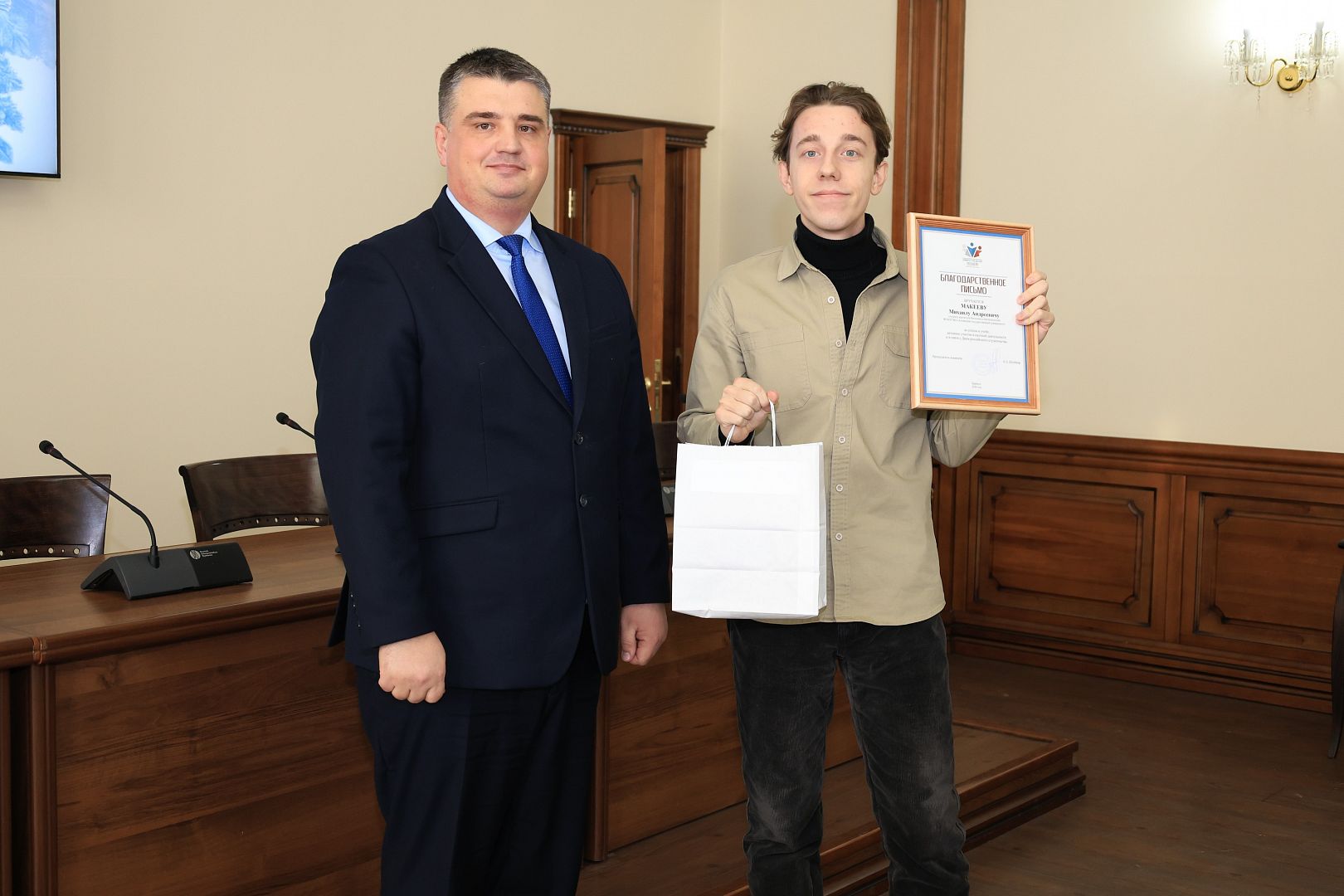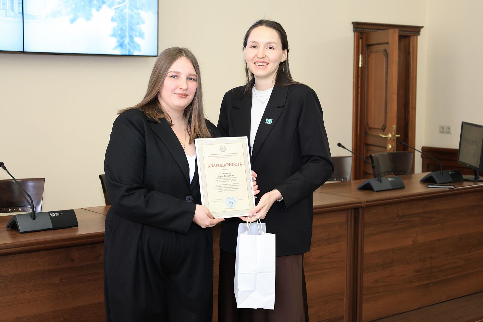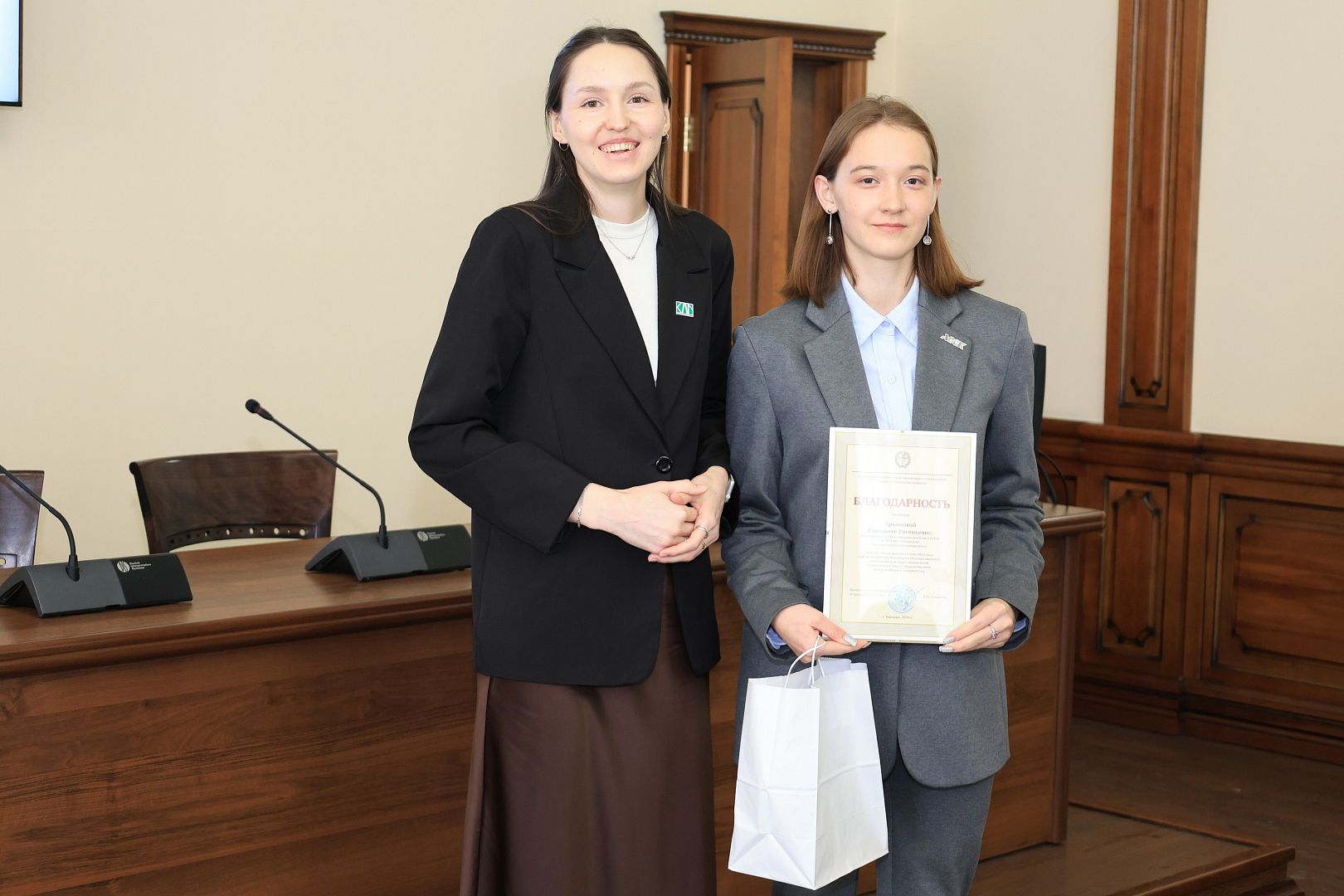 За активное участие в общественной деятельности в сфере молодежной политики, развитии патриотизма и формировании гражданской позиции студенческой молодежи Галина Берлизова вручила награды студентам: