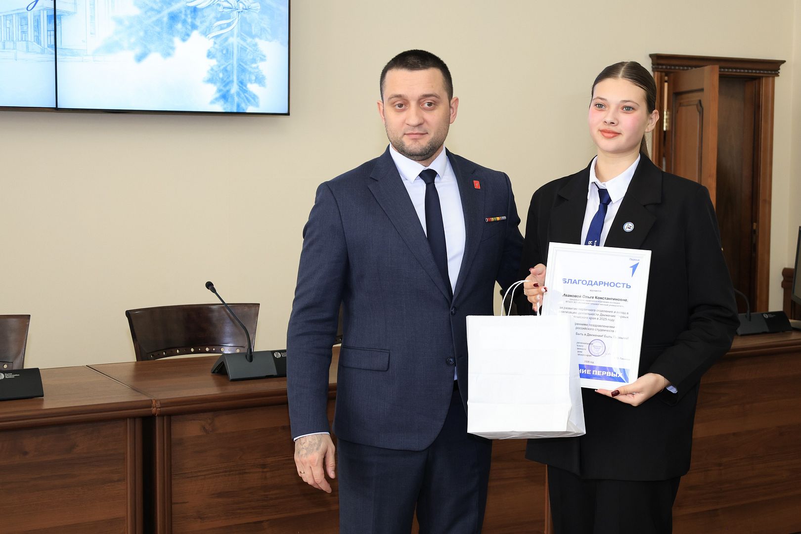 За развитие первичного отделения и вклад в реализацию деятельности «Движения Первых» Алтайского края в 2025 году благодарности вручены: