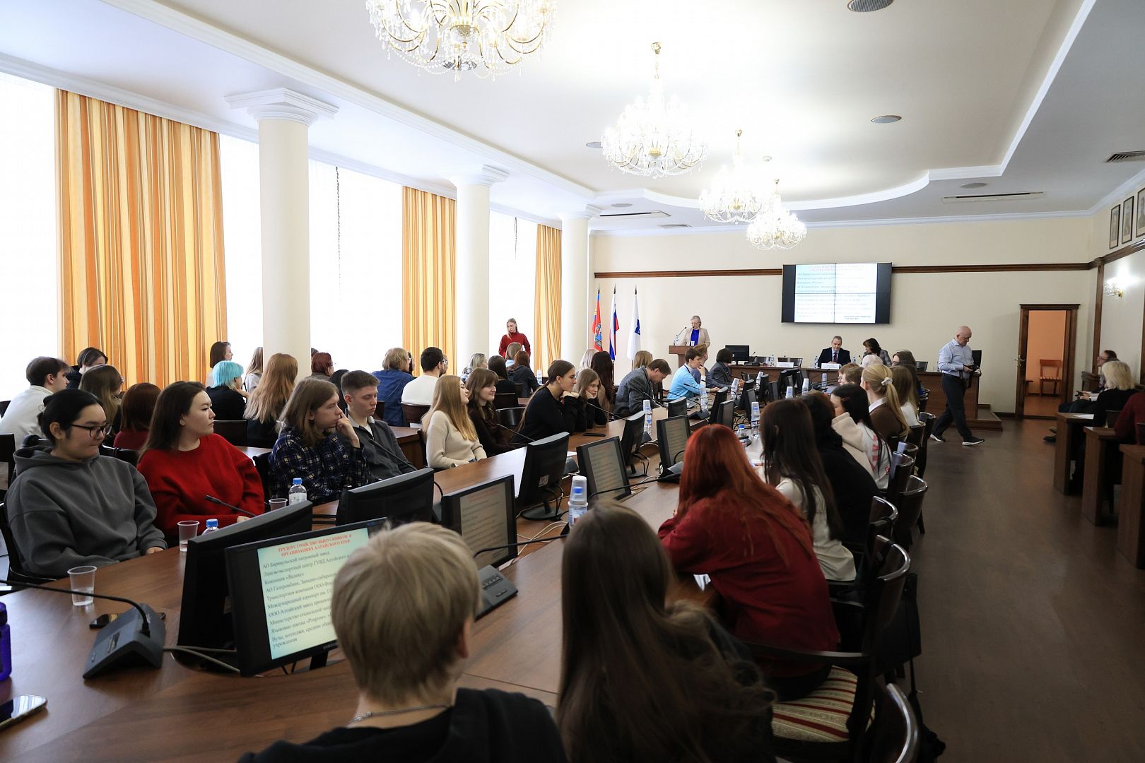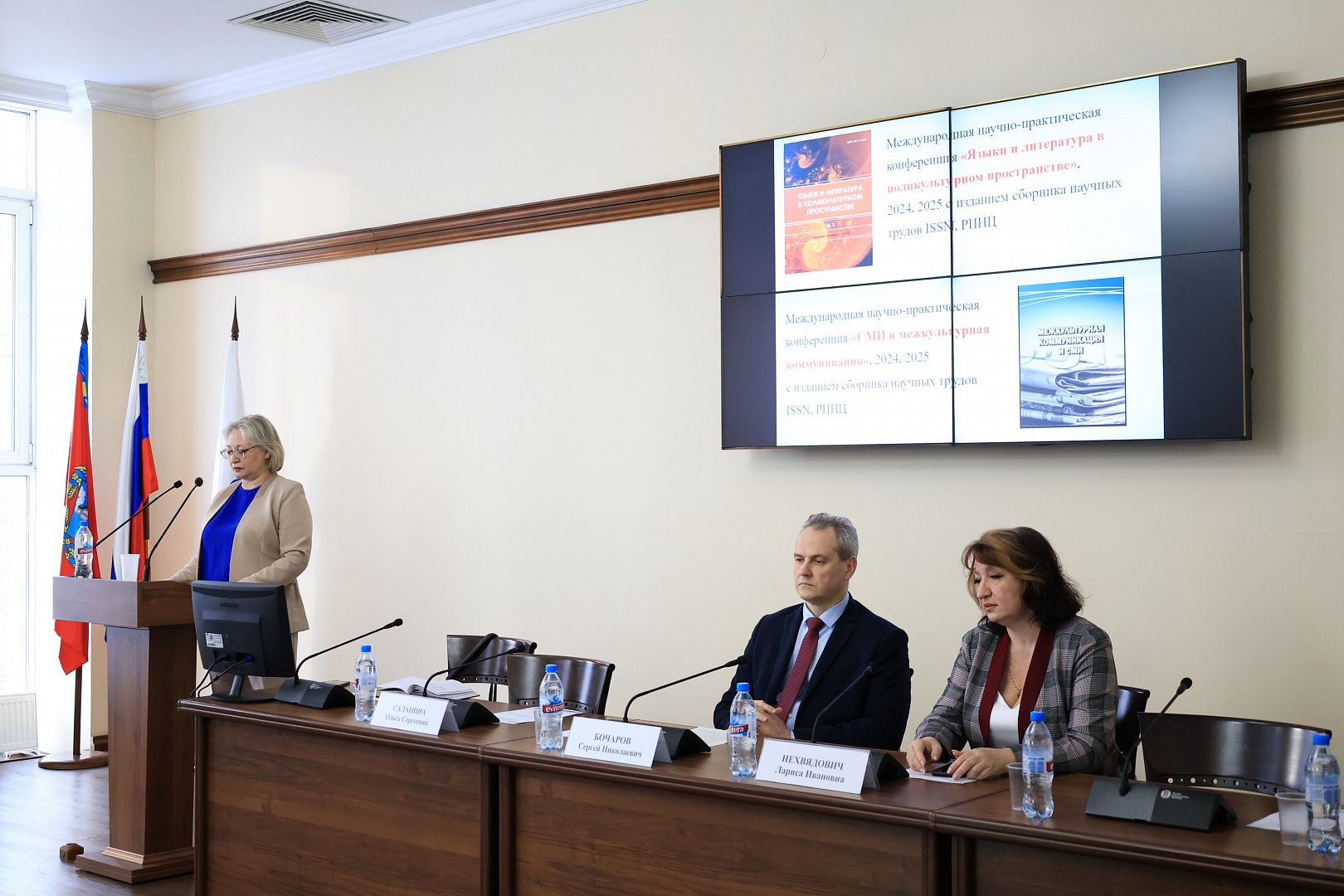 В зале ученого совета состоялось торжественное открытие школы. Заведующая кафедрой лингвистики, перевода и иностранных языков Ольга Саланина приветствовала участников и рассказала о достижениях кафедры лингвистики за последние два года.