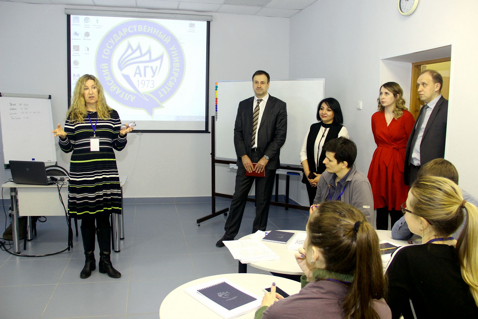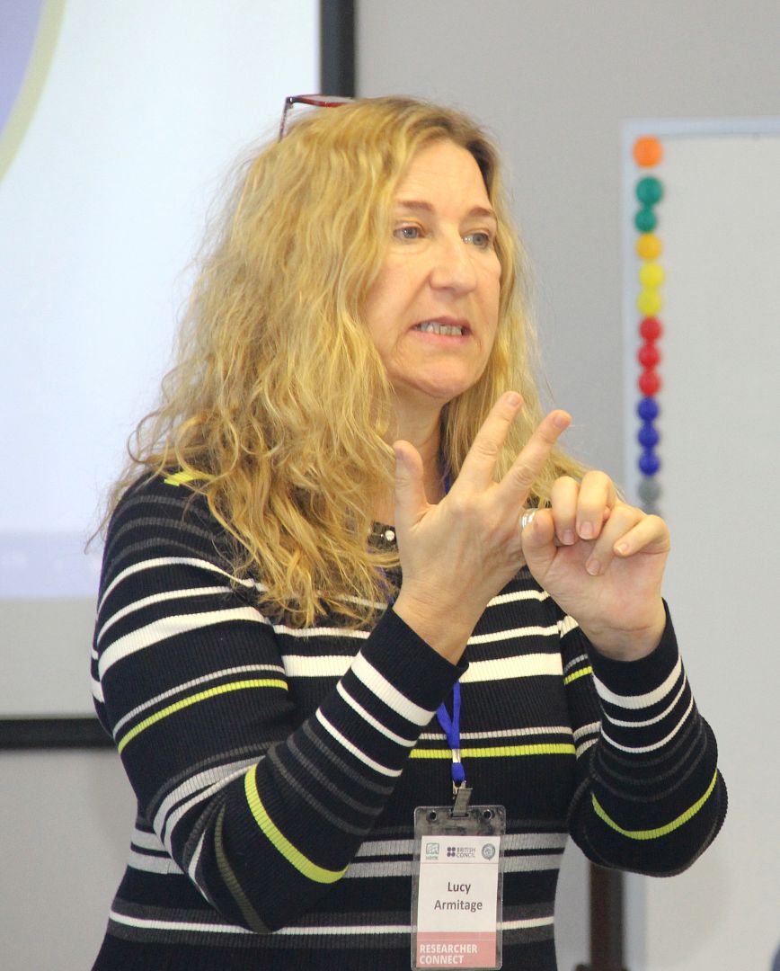 Спикером семинара-тренинга в АлтГУ выступила Люси Армитж – независимый эксперт по коммуникациям, консультант, тренер, работавшая несколько лет консультантом по коммуникациям и тренером в «Dialogue Matters», где развивала экспертизу организации в области создания коллабораций как на национальном, так и на международном уровне. Люси Армитж имеет многолетний опыт разработки и проведения курсов для ученых и исследователей в университетах, научно-исследовательских институтах Великобритании и за рубежом.