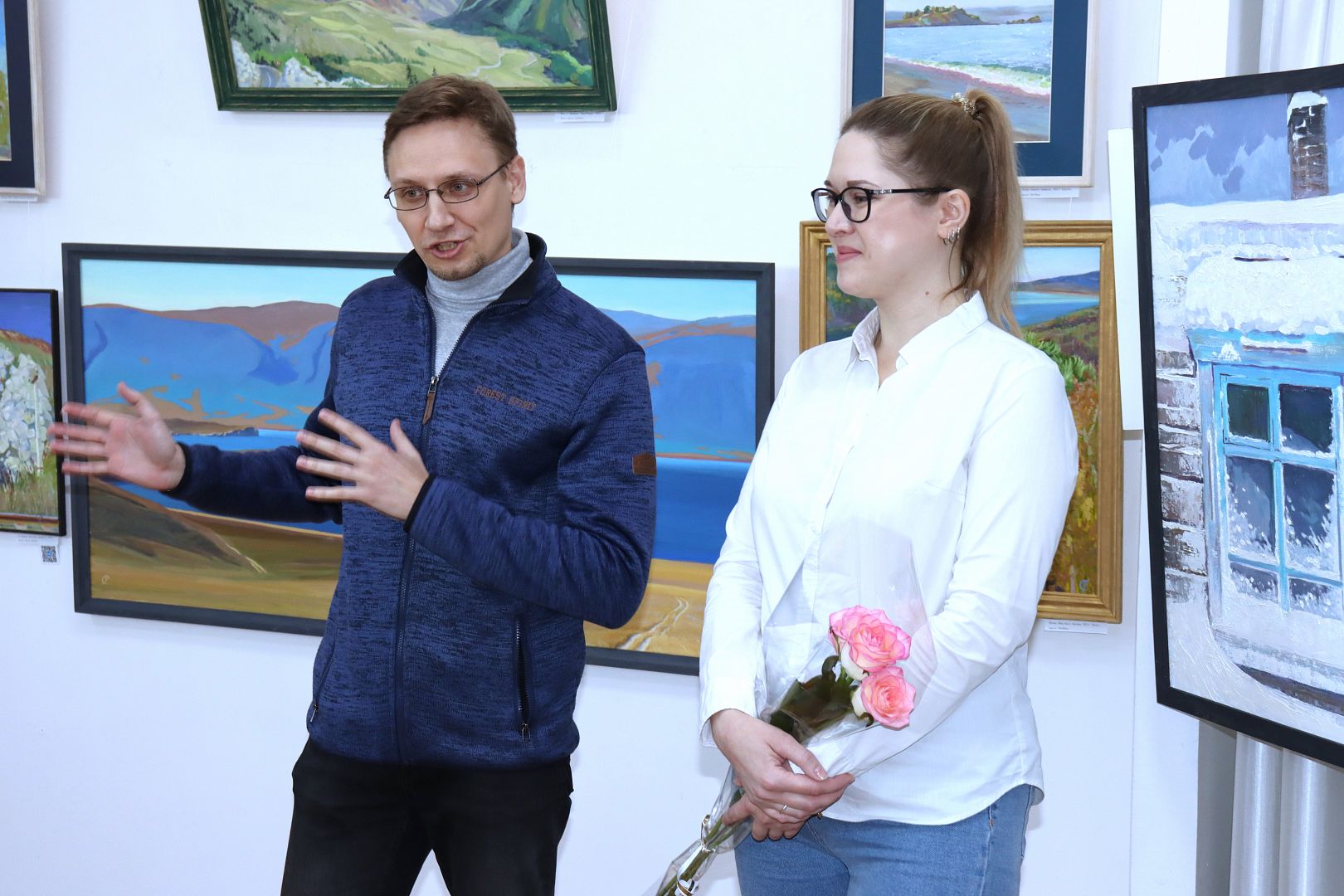 Надежда Александровна с 2014 г. занимается преподавательской деятельностью, сейчас работает в Новоалтайском государственном художественном училище преподавателем специальных дисциплин (рисунок, живопись, станковая композиция и УМО), поэтому в числе гостей открытия выставки были и ее ученики, поздравившие мастера с прекрасной экспозицией.