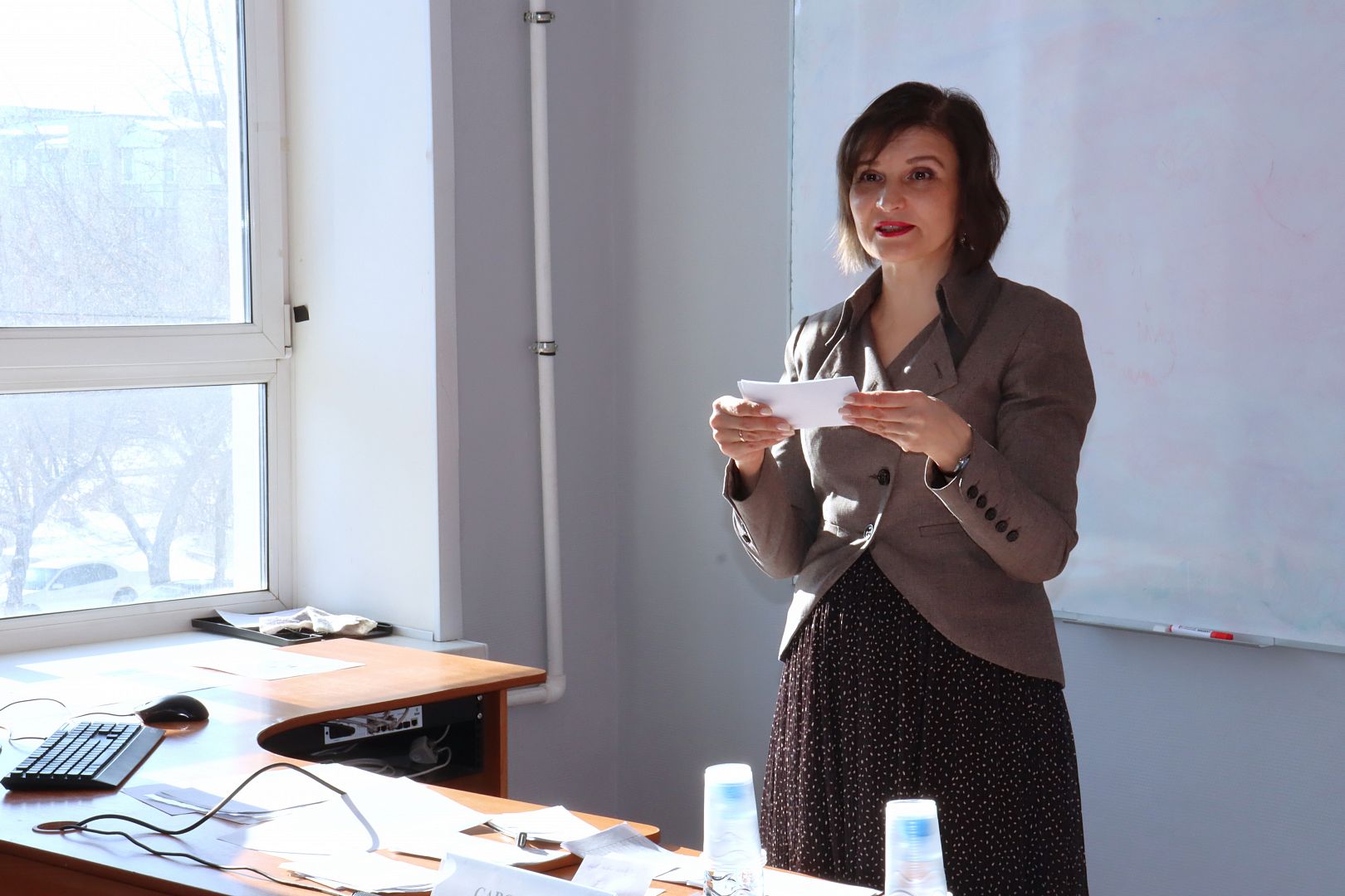 «Мы задумали впервые организовать Зимнюю школу перевода, руководствуясь двумя целями. Во-первых, обменяться опытом и расширить профессиональные контакты, а, во-вторых, показать студентам их будущую профессию не только с точки зрения практической стороны вопроса, но и продемонстрировать, что такое перевод, как наука», - уточнила, открывая мероприятие, заведующий кафедрой лингвистики, перевода и иностранных языков ИГН АлтГУ, кандидат филологических наук, доцент Ольга Сергеевна Саланина.
