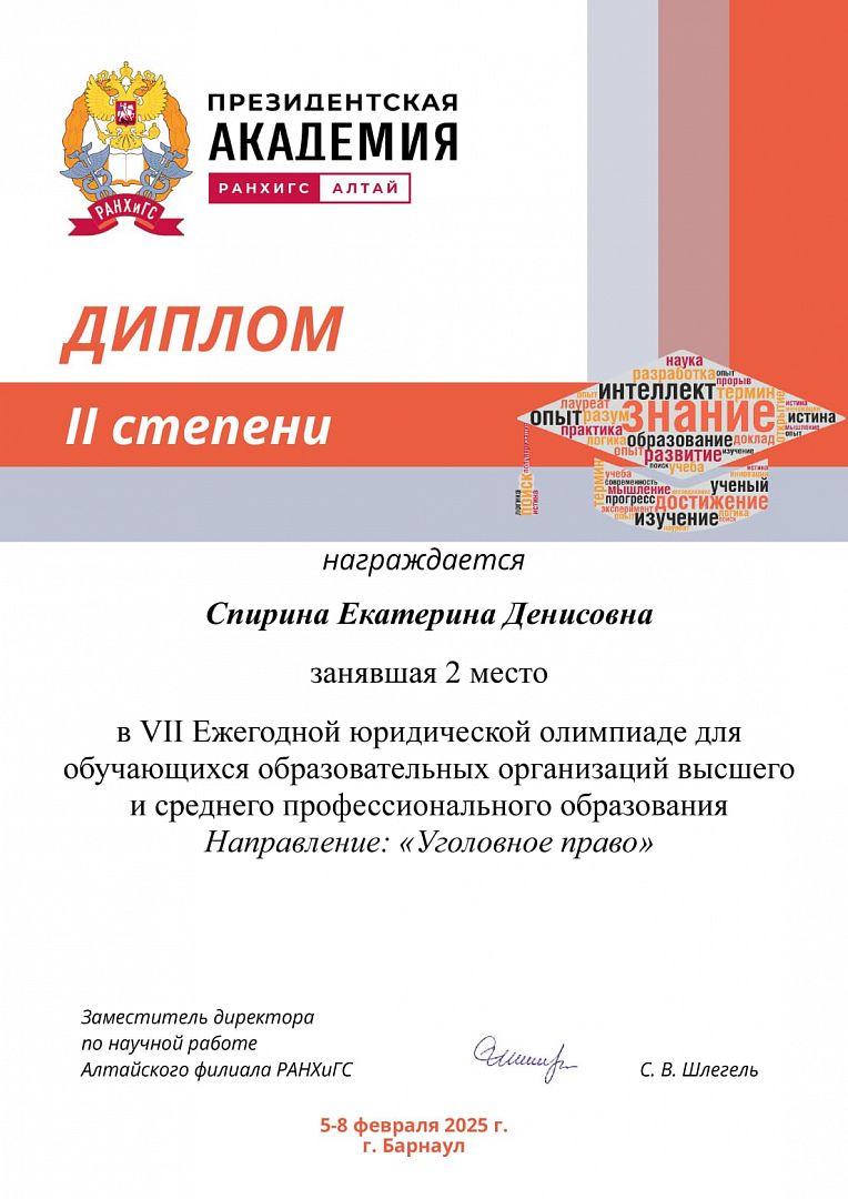 По итогам VII Ежегодной юридической олимпиады студенты колледжа Алтайского государственного университета стали победителями в направлении «Уголовное право».