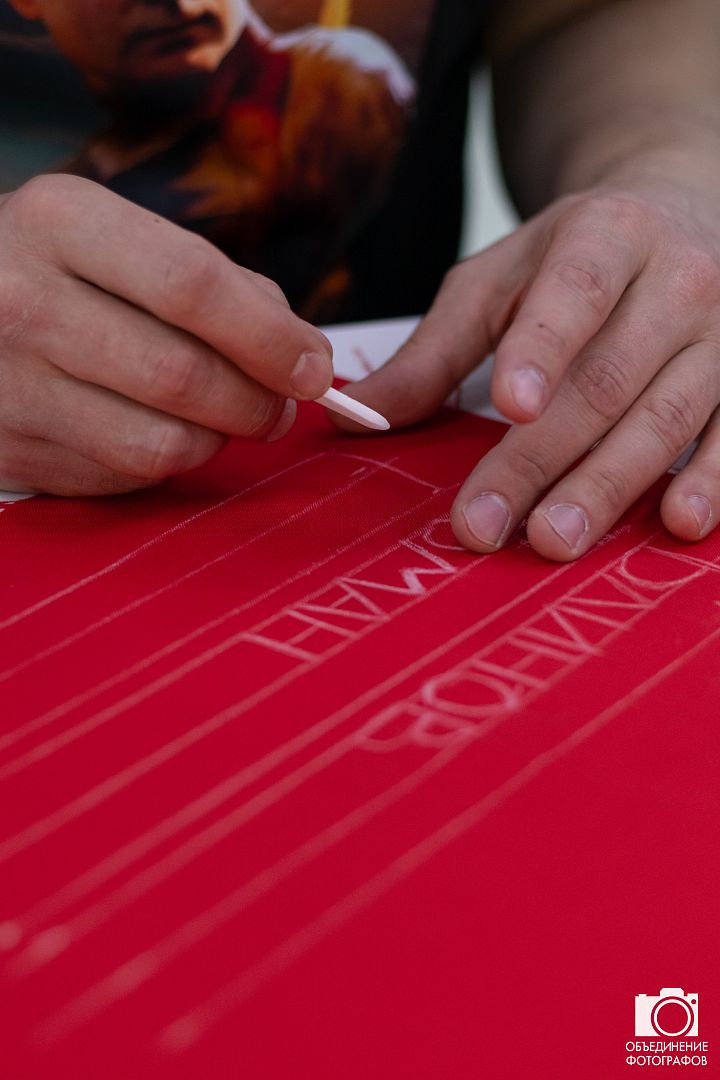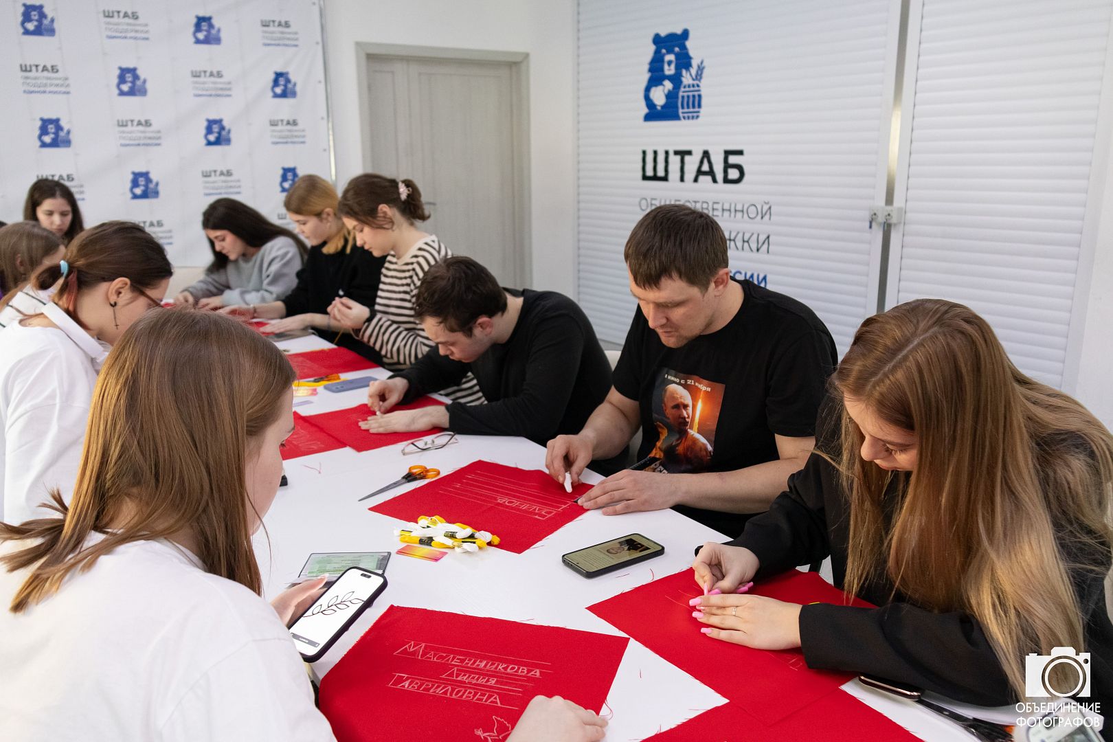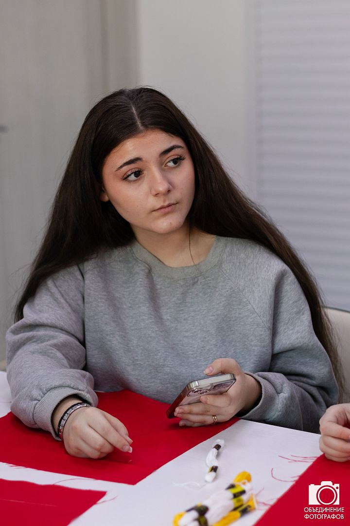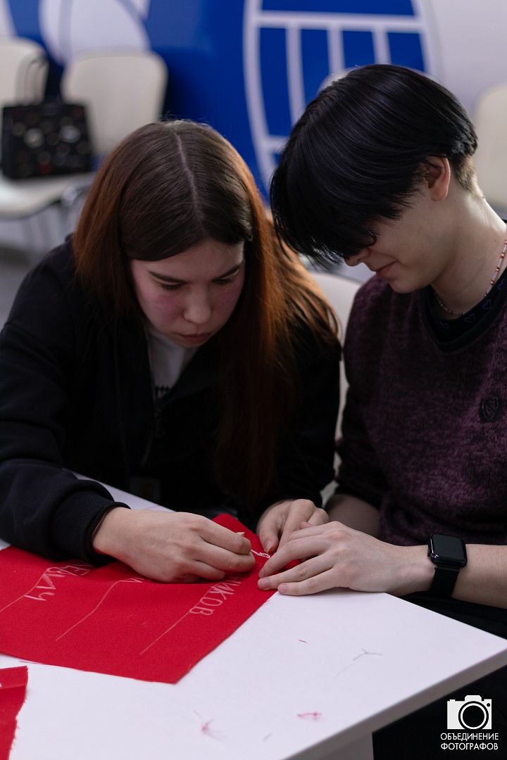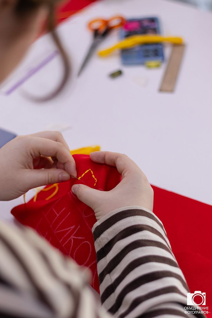 Участники на небольших кусочках ткани вышивали фамилии, имена и отчества своих героев — участников Великой Отечественной войны, СВО или иного локального вооруженного конфликта.