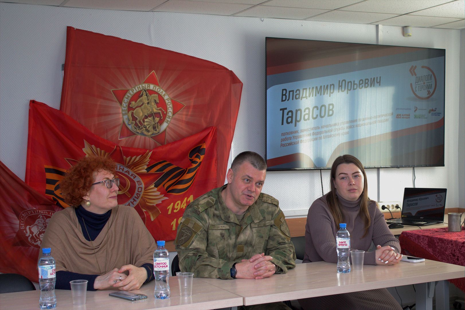 18 февраля в рамках Всероссийского проекта «Диалоги с Героями» состоялась встреча студентов колледжа АлтГУ с заместителем начальника Управления Росгвардии по Алтайскому краю по военно-политической работе полковником Владимиром Тарасовым.