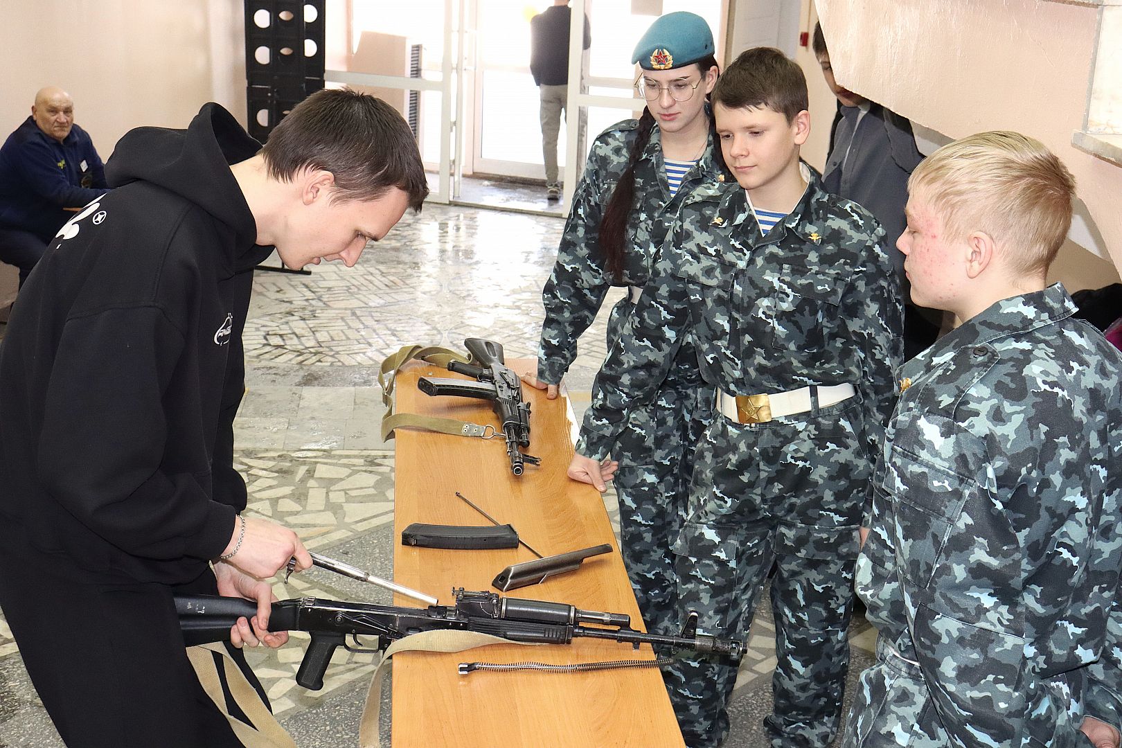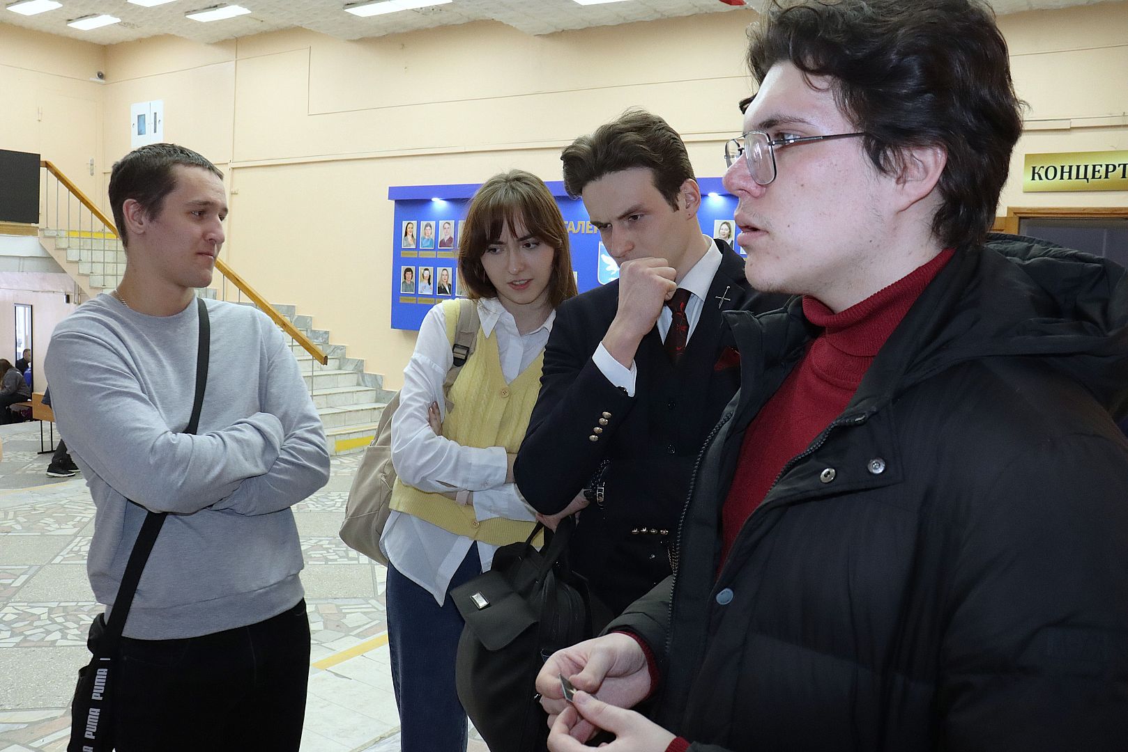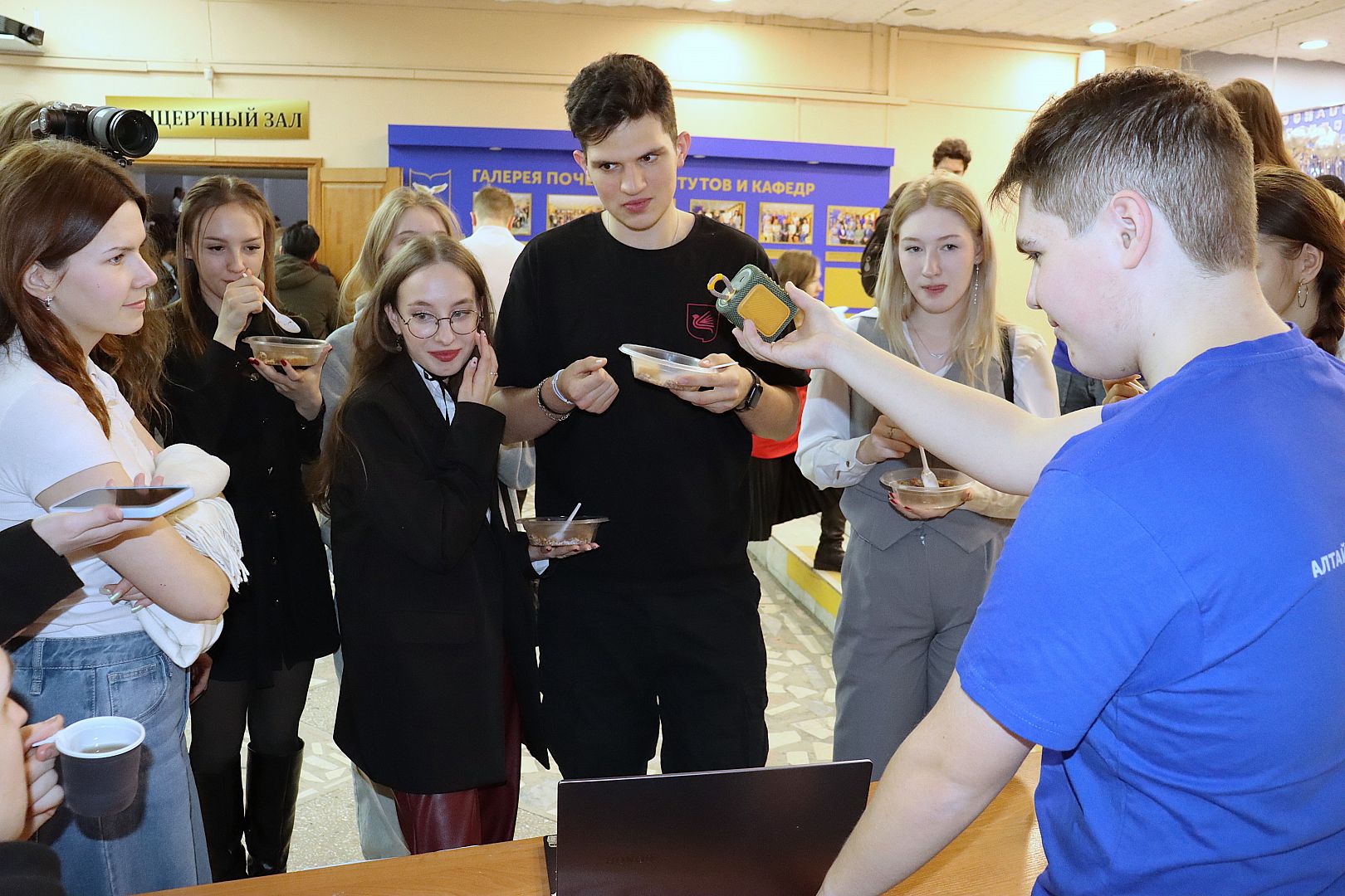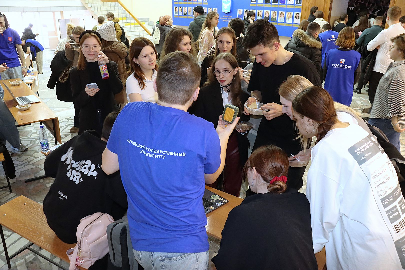 20 февраля на большой перемене в холле перед концертным залом АлтГУ развернулась площадка с 8 станциями, каждая из которых предлагала свое тематическое задание. Ведущими одной из станций выступили курсанты военно-спортивного клуба «Борец».