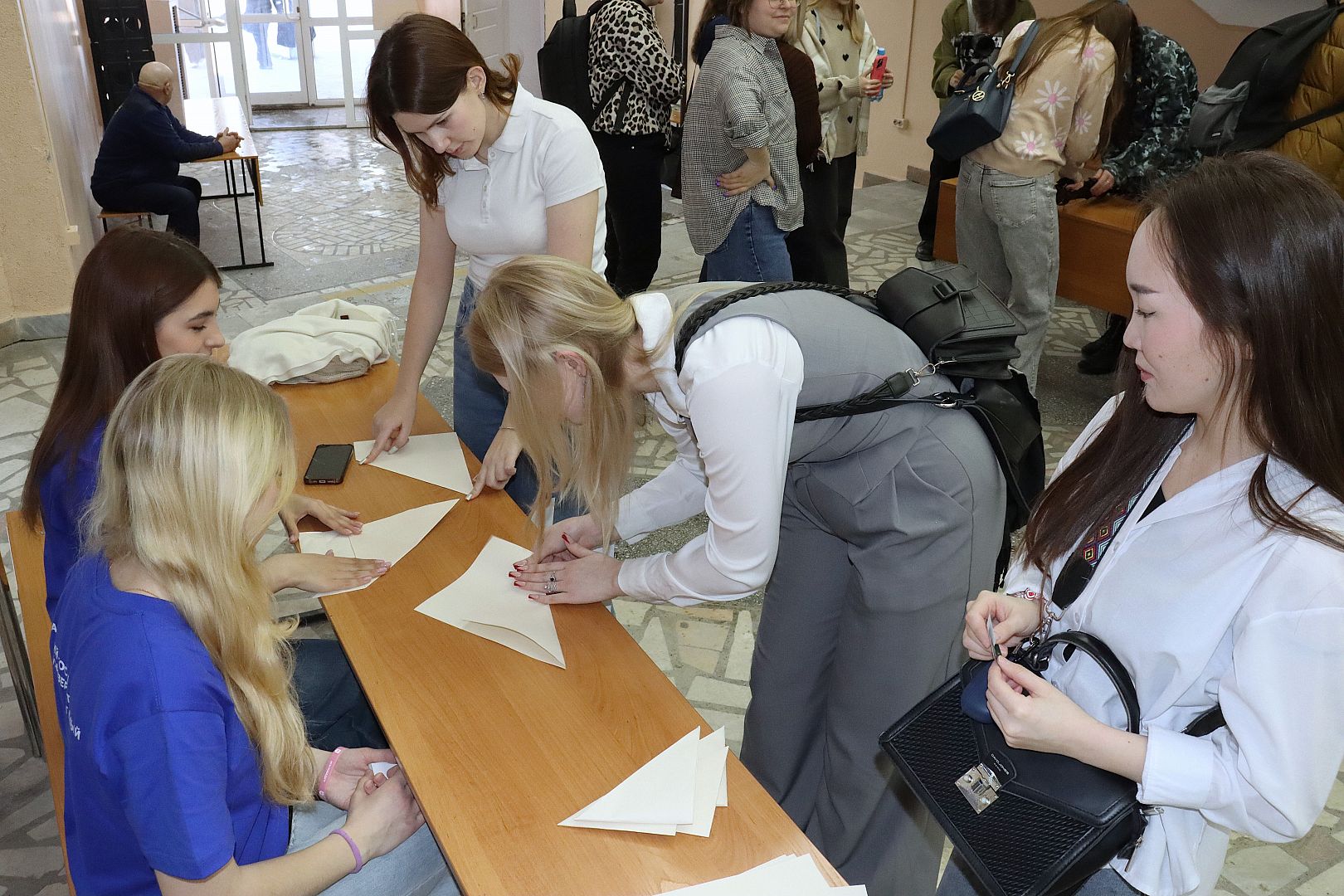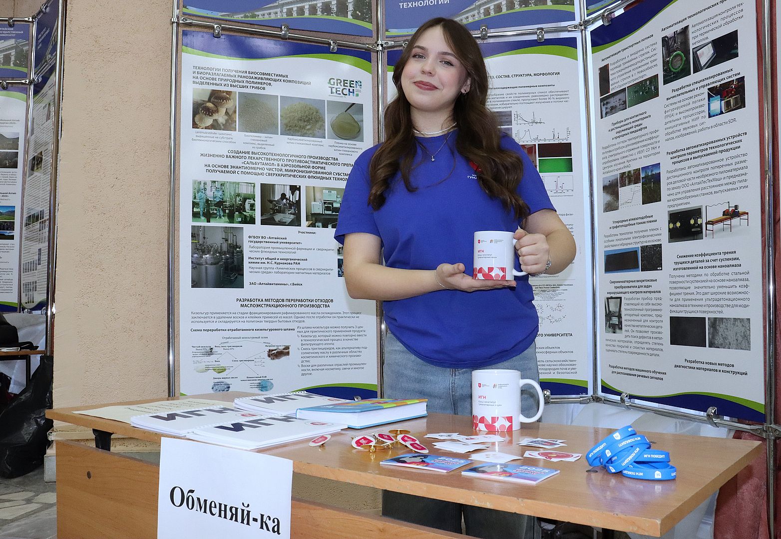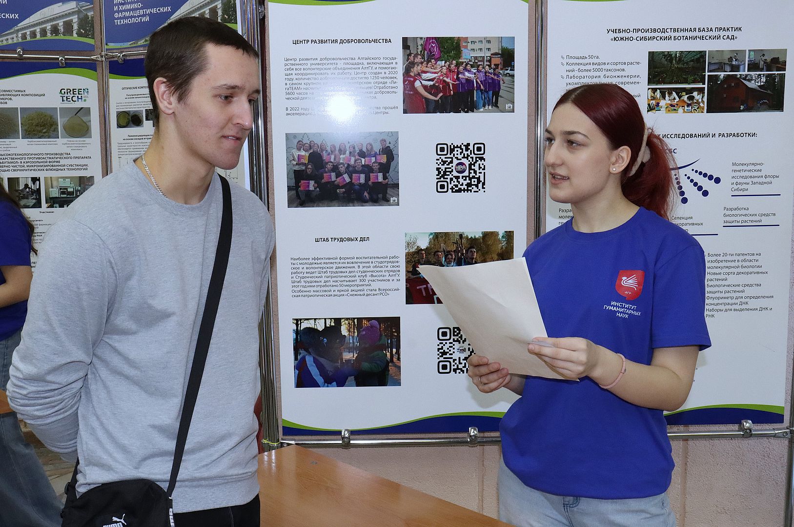 На каждой станции за правильный ответ или выполненное задание участникам мероприятия выдавали специальные флаеры, которые они затем могли обменять на брендовые подарки от Института гуманитарных наук АлтГУ.