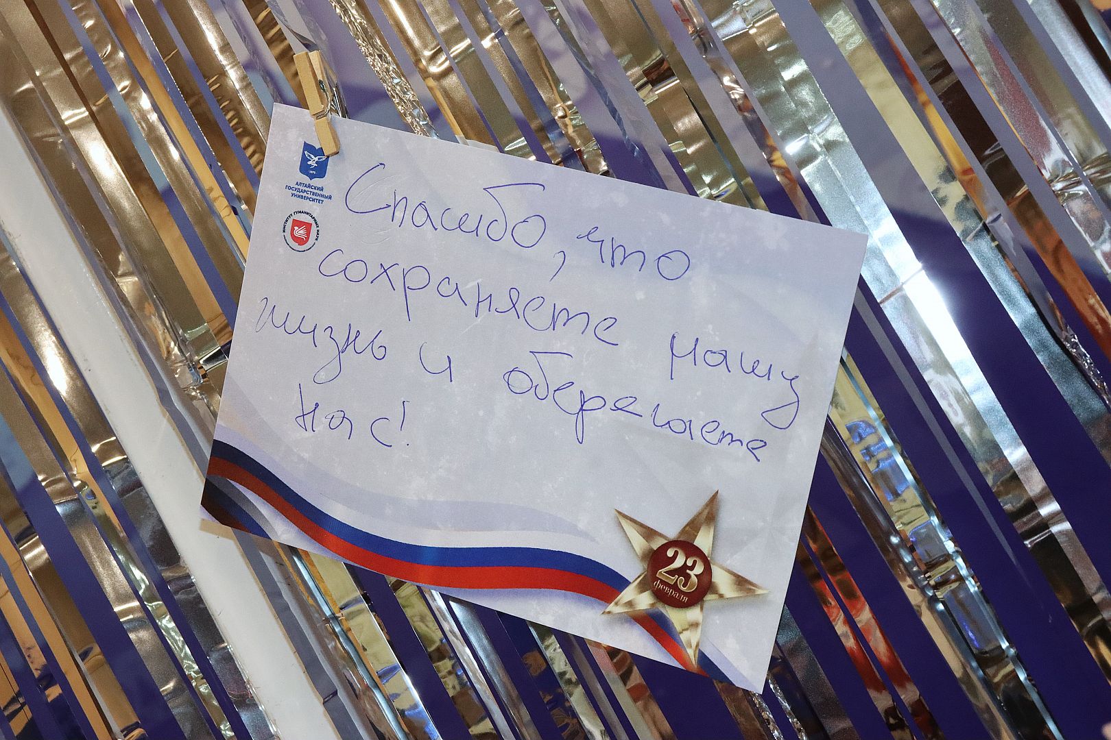 Задачей еще одной станции было написать письмо солдату и небольшую открытку с поздравлением на День защитника Отечества. Здесь же была развернута полевая кухня, где угощали вкусной гречкой с мясом и горячим чаем, и установлена праздничная фотозона.