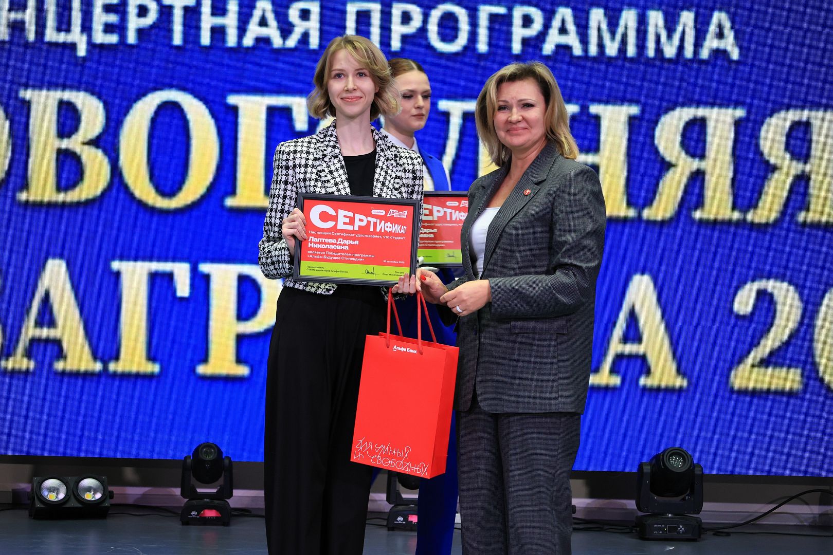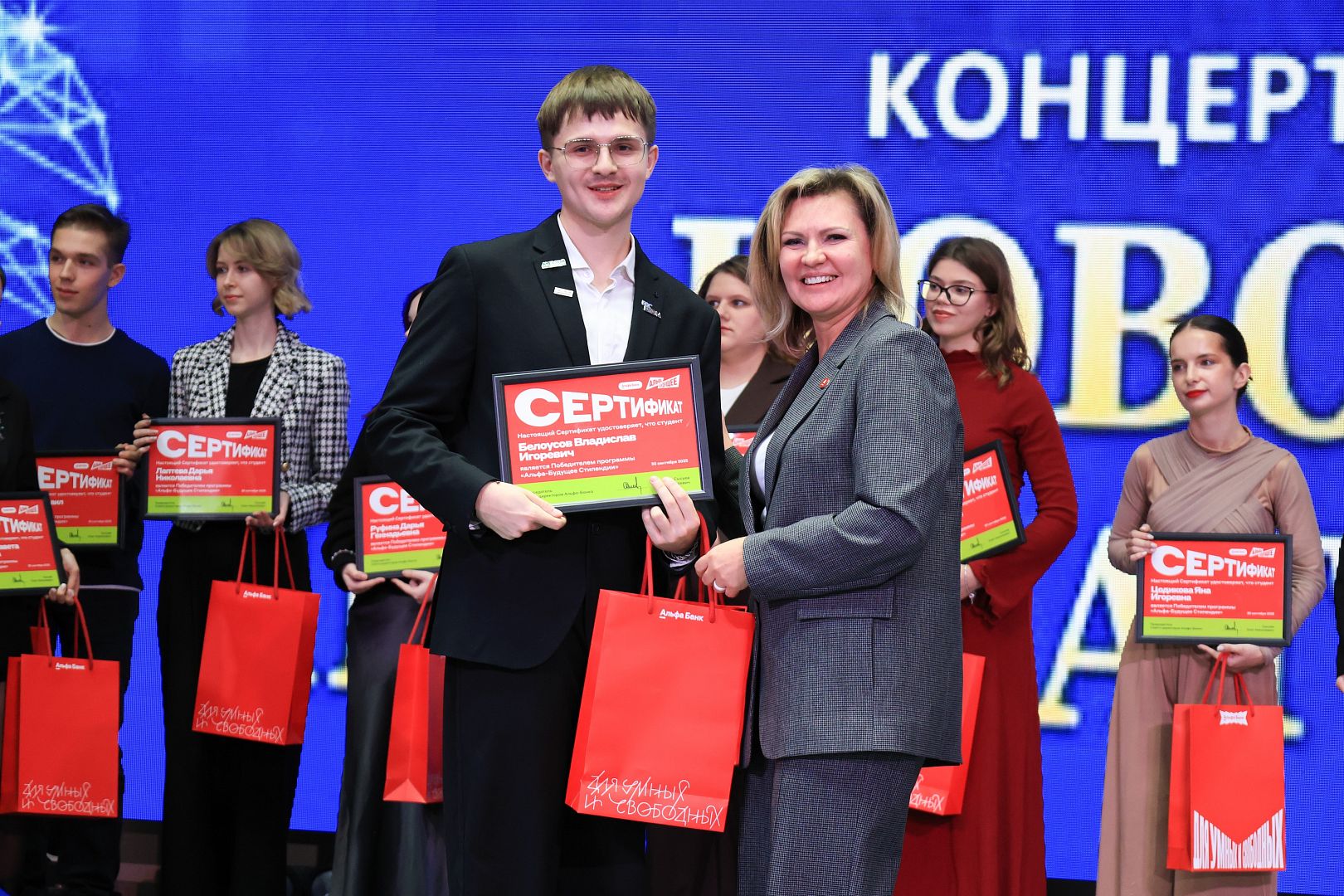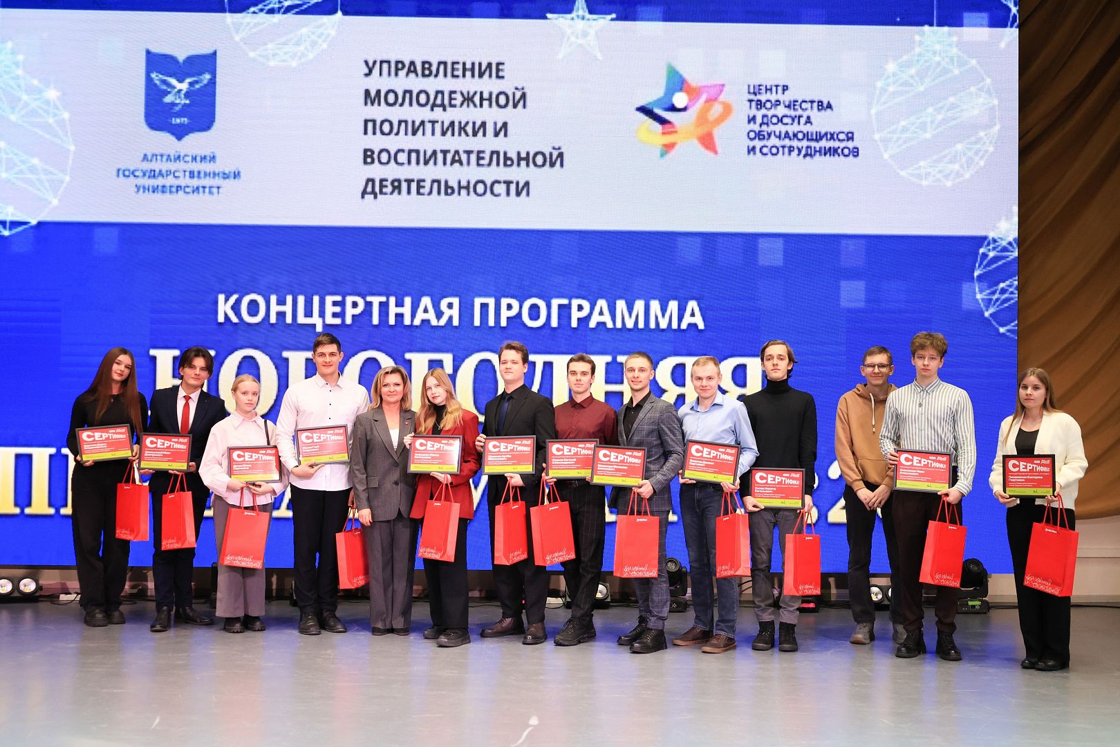 25 декабря на новогоднем концерте в Алтайском государственном университете чествовали студентов-победителей стипендиальной программы Альфа-Банка. Региональный управляющий банка по Алтайскому краю и Республике Алтай Ирина Бубенко поздравила ребят с победой и особо отметила беспрецедентное количество победителей от АлтГУ – 47 человек!