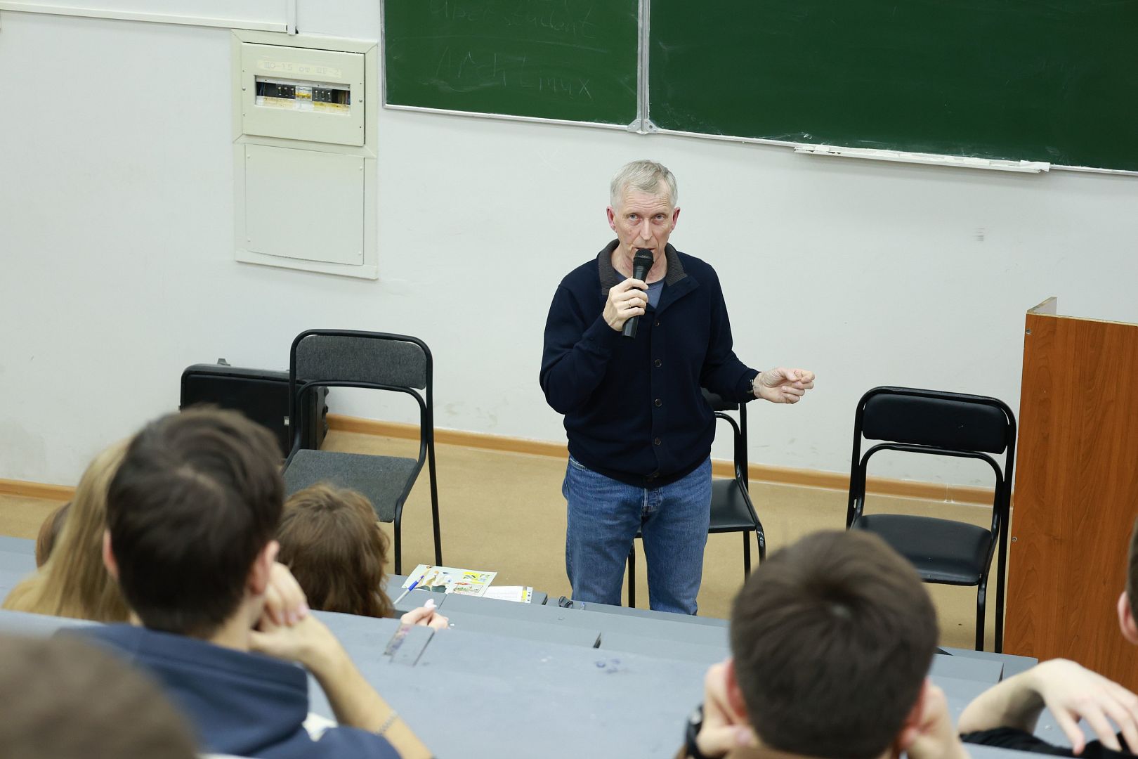 На встрече присутствовал директор ССК «Унифер-Форс» Сергей Буравлев. Во время встречи он провел небольшой опрос среди тех, кто пришел на открытую лекцию. В зале оказалось много спортивных ребят, причем некоторые занимаются даже несколькими видами спорта: легкая атлетика, плавание, фехтование, силовые тренировки, настольный теннис. Главный вывод – те, кто «втянулся» в спорт, не уходят из него, с легкостью и радостью пробуют что-то новое.