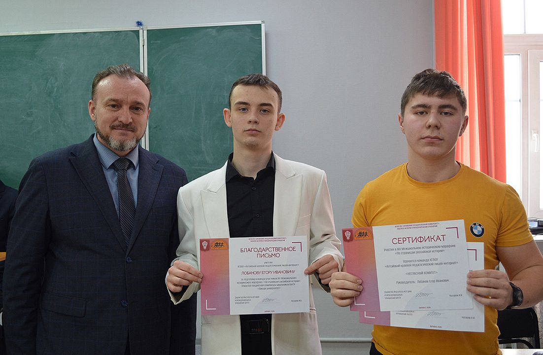 Члены команд-победителей и призеров XIII Межшкольного исторического марафона будут награждены дипломами Открытой предметной олимпиады АлтГУ для школьников «Покори университет» по истории. Наличие диплома победителя этой олимпиады дает абитуриентам дополнительные баллы к ЕГЭ (5 баллов – за победу, 3 балла – за призовое место), которые включаются в сумму конкурсных баллов при поступлении в университет.