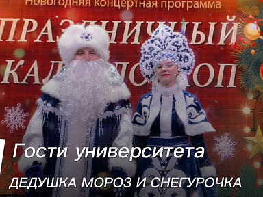 Новогодний номер газеты «За науку» представляют гости университета — Дедушка Мороз и Снегурочка