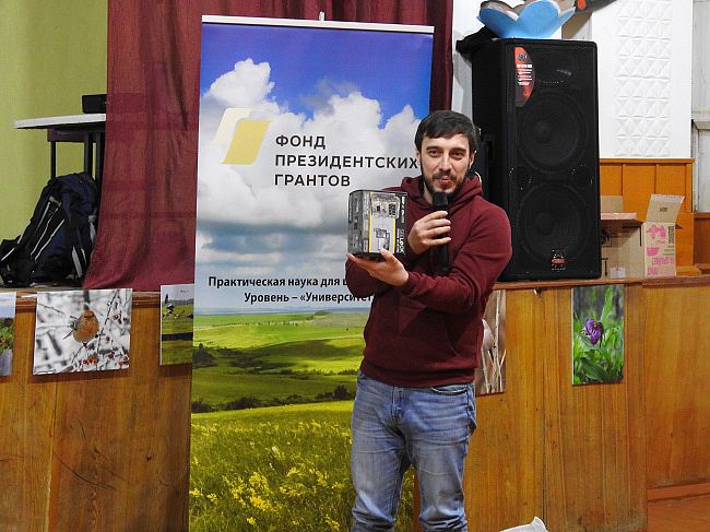 Далее взял слово менеджер проектов Алтайской региональной общественной организации «Экоклуб» – Виктор Никулкин. Он вручил отряду «Экопатруль» ценный приз – фотоловушку, которую мы сможем использовать в своей работе.