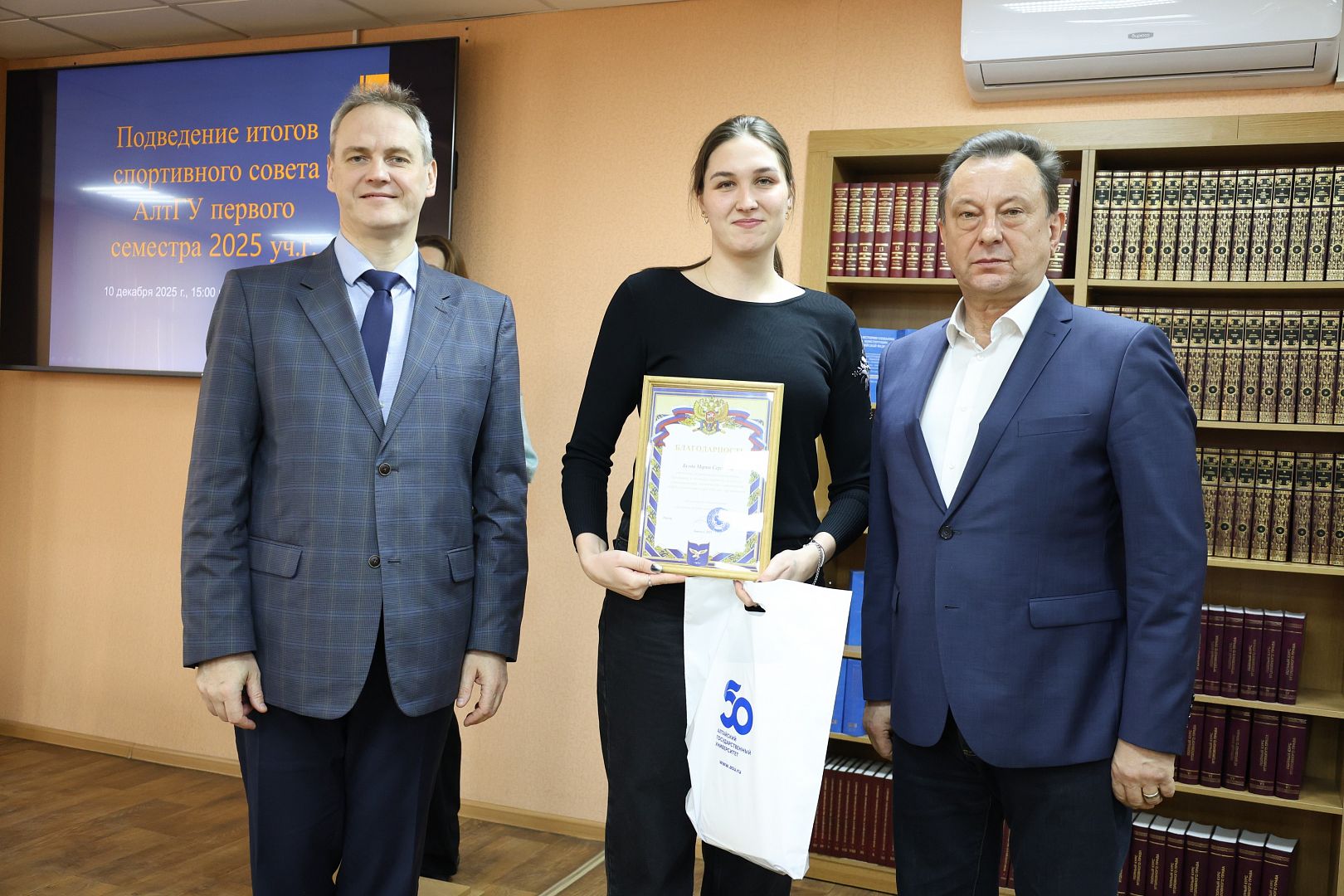 10 декабря в Алтайском государственном университете состоялось награждение победителей конкурса «Спортсмены АлтГУ 2025», а также сборных команд за высокие результаты на всероссийских студенческих соревнованиях.